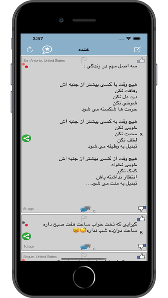 Khandeh خنده is een sociale netwerkomgeving die zich richt op het delen van Perzische grappen en humor. Deze gratis applicatie is beschikbaar voor iPhone-gebruikers en biedt een eenvoudige interface die het gemakkelijk maakt om door een verscheidenheid aan grappen te bladeren. Gebruikers kunnen niet alleen grappen lezen, maar ook hun eigen grappen delen met de Perzische gemeenschap, waardoor een levendige uitwisseling van humor ontstaat.